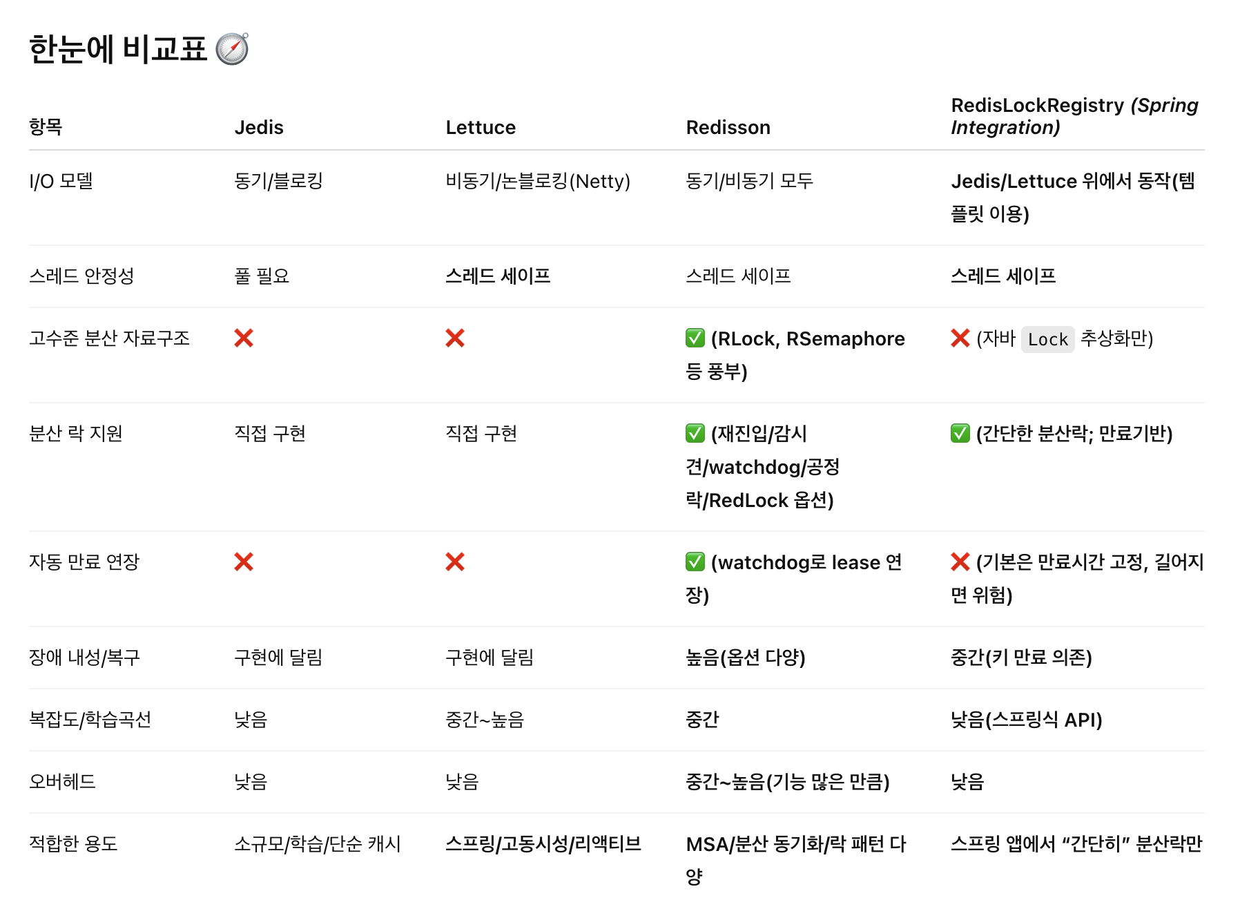 - 단점: 네트워크 왕복 + 락 획득/해제 비용으로 성능 저하